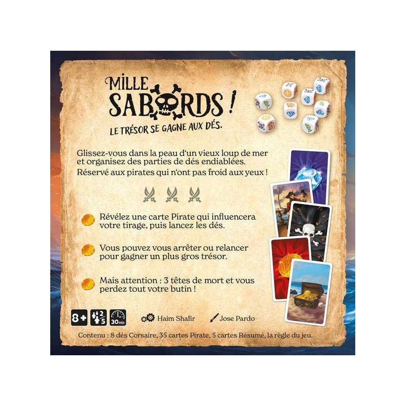 Du suspense tout au long de la partie , des retournements de situation : à l'abordage ! à partir de 8 ans de 2 à 5 joueurs pendant 30 minutes