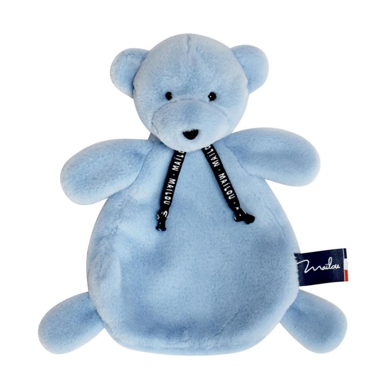 Doudou plat ours bleu, frabrication française. Dès la naissance